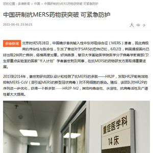 Áß±¹ ¿¬±¸Áø¿¡ ÀÇÇØ Áßµ¿È£Èí±âÁõÈıº(¸Þ¸£½º)À» ÀÏÀ¸Å°´Â ¹ÙÀÌ·¯½º¸¦ È¿°úÀûÀ¸·Î ¾ïÁ¦ÇÒ ¼ö ÀÖ´Â ¹°ÁúÀÌ °³¹ß, ÇâÈÄ ÃßÀ̰¡ ÁÖ¸ñµÈ´Ù.