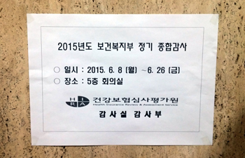 ½ÇÁ¦ º¹ÁöºÎ °¨»ç½ÇÀº Áö³ 8ÀϺÎÅÍ °Ç°º¸Çè½É»çÆò°¡¿ø(¿øÀå ¼Õ¸í¼¼) Á¤±âÁ¾ÇÕ°¨»ç¿¡ µé¾î°¬´Ù. °¨»ç´Â ¿À´Â 25ÀϱîÁö ¾à 2ÁÖ°£ ÁøÇàµÉ ¿¹Á¤ÀÌ´Ù.