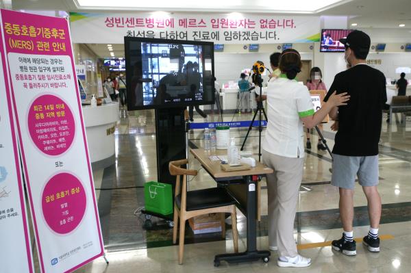 ¶Ç µÎ º´¿øÀº ¸Þ¸£½º ÀǽÉȯÀÚ ¼±º°À» À§ÇØ ¿ø³» Àû¿Ü¼± ü¿ ÃøÁ¤±â¸¦ ¼³Ä¡ÇØ ¸ðµç ³»¿ø°´µéÀÇ Ã¼¿ÂÀ» ÃøÁ¤Çϰí ÀÖÀ¸¸ç, °£È£»çµéÀ» ¹èÄ¡ÇØ ¼Õ¼Òµ¶À» ½Ç½ÃÇÏ´Â µî °¨¿° ¿¹¹æ Ȱµ¿À» Áö¼Ó ÁßÀÌ´Ù.[»çÁø ù»]