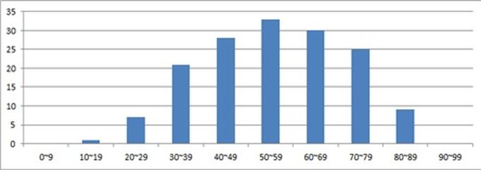 »ç¸ÁÀÚµéÀÇ ¿¬·ÉÀº 70´ë°¡ 7¸í(37%)À¸·Î °¡Àå ¸¹¾Ò°í, 60´ë 6¸í(32%), 50´ë 3¸í(16%), 80´ë 2¸í(11%) ¼øÀ̾ú´Ù. |
