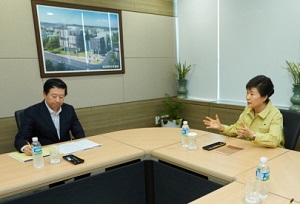 ¹Ú±ÙÇý ´ëÅë·ÉÀº 17ÀÏ ¿ÀÈÄ ÃæºÏ ¿À¼Û ±¹¸³º¸°Ç¿¬±¸¿ø¿¡¼ »ï¼º¼¿ïº´¿ø ¼ÛÀçÈÆ ¿øÀåÀ» ºÒ·¯ ¾à 5ºÐ°£ ¸é´ãÇß´Ù.[»çÁø]
