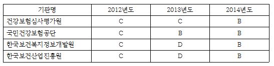 ±âȹÀçÁ¤ºÎ(Àå°ü ÃÖ°æÈ¯)°¡ 17ÀÏ ¹ßÇ¥ÇÑ °ø°ø±â°ü °æ¿µÆò°¡°á°ú¿¡ µû¸£¸é ´ëÇ¥ÀûÀÎ º¸°ÇÀÇ·á °ø°ø±â°üÀÎ °Ç°º¸Çè½É»çÆò°¡¿ø(¿øÀå ¼Õ¸í¼¼)°ú ±¹¹Î°Ç°º¸Çè°ø´Ü(ÀÌ»çÀå ¼º»óö) ¸ðµÎ Bµî±ÞÀ» ¹Þ¾Ò´Ù. ½ÉÆò¿øÀº Áö³ÇØ Cµî±Þ¿¡¼ ÇÑ ´Ü°è ¿Ã¶úÀ¸¸ç °ø´ÜÀº Áö³ÇØ Bµî±ÞÀ» À¯ÁöÇß´Ù.