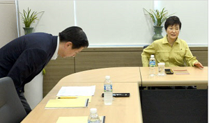 ³ëȯ±Ô îñ ´ëÇÑÀÇ»çÇùȸ ȸÀå ¿ª½Ã ¼ÛÀçÈÆ ¿øÀåÀÌ ¹Ú±ÙÇý ´ëÅë·É¿¡°Ô »ç°úÇÏ´Â »çÁøÀ» ÀÚ½ÅÀÇ SNS¿¡ °ÔÀçÇϸç "Á¤ºÎ°¡ ÀڽŵéÀÇ ¹æ¿ª ½ÇÆÐ Ã¥ÀÓÀ» »ï¼º¼¿ïº´¿ø¿¡°Ô ¶°³Ñ±â´Â ¼ø°£ÀÇ »çÁø"À̶ó°í ºñÆÇÇß´Ù.