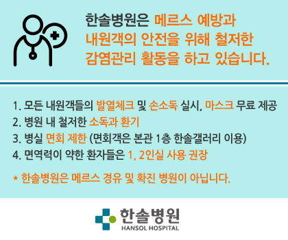 ÀÔ¿ø ȯÀÚ ¸éȸ°´Àº º»°ü 1Ãþ ÇѼְ¶·¯¸®¸¦ ÀÌ¿ëÅä·Ï ÇØ º´½Ç ³» °¨¿° À§Ç輺µµ Â÷´ÜÇϰí ÀÖ´Ù. ¶ÇÇÑ ¸é¿ª·ÂÀÌ ¾àÇÑ È¯ÀÚÀÇ °æ¿ì 1, 2ÀÎ½Ç »ç¿ëÀ» ±ÇÀåÇϰí ÀÖ´Ù.