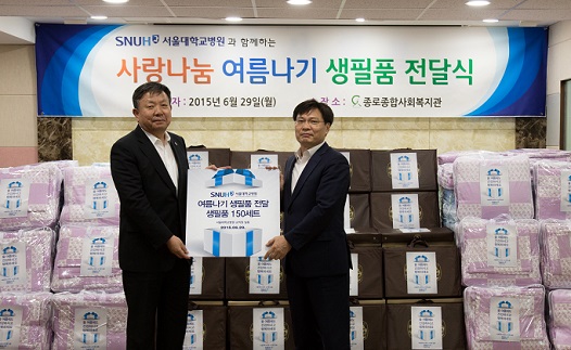 À̳¯ Çà»ç¿¡¼ ¿Àº´Èñ ¿øÀå µî ¼¿ï´ëº´¿ø ÀÓÁ÷¿ø 20¿©¸íÀº ¿©¸§¿ë ħ±¸·ù ¼¼Æ®, ½Äǰ ¼¼Æ® µî Àú¼ÒµæÃþ Áֹε鿡°Ô ÇÊ¿äÇÑ 1000¸¸¿ø »ó´çÀÇ ¿©¸§ »ýÇÊǰÀ» Àü´ÞÇß´Ù.
