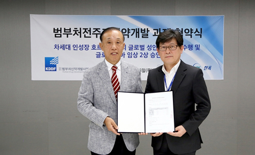 Çѵ¶(´ëÇ¥ÀÌ»ç ±è¿µÁø)°ú Á¦³Ø½Å(´ëÇ¥ÀÌ»ç ¼º¿µÃ¶)ÀÌ °øµ¿°³¹ß ÁßÀÎ Áö¼ÓÇü ¼ºÀåÈ£¸£¸óÁ¦ 'GX-H9'ÀÌ ¹üºÎóÀüÁÖ±â½Å¾à°³¹ß»ç¾÷ °úÁ¦·Î ¼±Á¤µÅ Áö³ 16ÀÏ ¹üºÎó½Å¾à°³¹ß»ç¾÷´Ü(´ÜÀå ÁÖ»ó¾ð)°ú Çù¾àÀ» ü°áÇß´Ù.