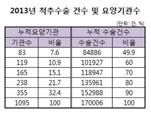 ¿¬µµº° ôÃß¼ö¼ú ÀÇ·á±â°ü ¶ÇÇÑ Áö¼ÓÀûÀ¸·Î Áõ°¡ÇÏ´Â °ÍÀ¸·Î ³ªÅ¸³µ´Ù. 2007³â ôÃß¼ö¼úÀ» ½ÃÇàÇÑ ÀÇ·á±â°üÀº º´¿ø 269°÷, ÀÇ¿ø 230°÷À» Æ÷ÇÔÇØ ÃÑ 731°³¼Ò¿´´Ù. ÇÏÁö¸¸ 2013³â¿¡´Â ÀÇ¿ø±Þ ÀÇ·á±â°ü 1°÷ÀÌ ÁÙ¾îµç °ÍÀ» Á¦¿ÜÇÏ°í ¸ðµç Á¾º°ÀÌ Áõ°¡ÇØ ÃÑ 1095°³¼Ò¿¡¼ ¼ö¼úÀÌ ÀÌ·ïÁ³´Ù.