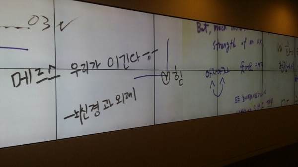 º»°ü°ú º°°üÀ» ¿À°¡´Â ·Îºñ ÇÑÂÊ º®¸é¿¡ ¼³Ä¡µÈ Àü±¤ÆÇ¿¡´Â ¡°¸Þ¸£½º ¿ì¸®°¡ À̱ä´Ù¡± µî º´¿ø Á÷¿øµéÀÌ ÀÛ¼ºÇÑ ¸Þ½ÃÁö°¡ °Ô½ÃµÆÀ¸¸ç, Á÷¿ø½Ä´ç °Ô½ÃÆÇ¿¡µµ ¡°¿ì¸® Á¶±Ý¸¸ ´õ Èû³À½Ã´Ù¡± µî Á÷¿øµéÀ» °Ý·ÁÇÏ´Â °Ô½Ã±ÛµéÀÌ ºÎÂøµÆ´Ù.