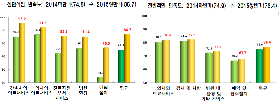 2014³â ÇϹݱâ 74.8Á¡¿¡ ºÒ°úÇß´ø ÀÔ¿øÈ¯ÀÚ Æò±Õ ¸¸Á·µµ°¡ 2015³â »ó¹Ý±â 86.7·Î Èǽ »ó½ÂÇÑ °Í. ¿Ü·¡ ȯÀÚ ¸¸Á·µµ ¿ª½Ã 74.9Á¡¿¡¼ 76.4Á¡À¸·Î ³ô¾ÆÁ³´Ù.