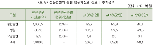 Àü¹®º´¿ø µµÀÔ¿¡ µû¸¥ °Ç°º¸Çè ÀçÁ¤ Àý°¨ Æò±Õ¾×Àº ÃÖ¼Ò 345¾ï¿ø¿¡¼ 384¾ïÀ¸·Î Ãß°èµÆ´Ù.