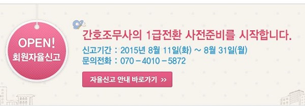 °£¹«ÇùÀº Çùȸ ȨÆäÀÌÁö¿¡ ¡®°£È£Á¶¹«»ç 1±Þ Àüȯ »çÀüÁغñ¸¦ À§ÇÑ È¸¿øÀÚÀ²½Å°í¡¯ Äڳʸ¦ ¸¶·ÃÇϰí ÀÌ´Þ 11ÀϺÎÅÍ 31ÀϱîÁö ȸ¿øµéÀÇ Çз±⺻Á¤º¸ ¼öÁýÀ» ½ÃÇàÇϰí ÀÖ´Ù.[»çÁø]