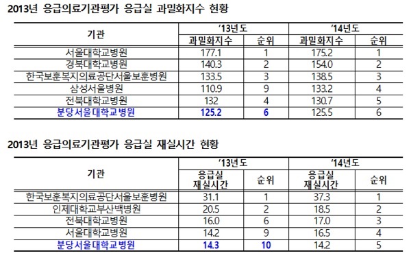¶ÇÇÑ "Áö³ 2008³â ÃÖ¿ì¼ö¿´´ø ºÐ´ç¼¿ï´ëº´¿øÀÇ ÀÀ±ÞÀÇ·á±â°ü Æò°¡´Â ÇØ°¡ °¡¸é¼ ¡®ÁßÀ§¡¯·Î ¶³¾îÁ® ¸î ³â° Çì¾î ³ª¿ÀÁö ¸øÇϰí ÀÖ´Ù"°í ÁöÀûÇß´Ù.[Ç¥]