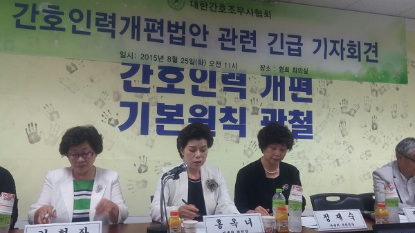 ´ëÇѰ£È£Çùȸ°¡ Á¦¾ÈÇß´ø ¡®°£È£Áö¿ø»ç¡¯·Î ¸íĪÀ» °³Á¤Çϰڴٴ ³»¿ë¿¡ ´ëÇØ¼µµ °£¹«ÇùÀº ¸íĪ °³Á¤ÀÇ ÁÖü¸¦ ¸Á°¢ÇÑ ¹ý¾ÈÀº Àý´ë ¼ö¿ëºÒ°¡ÇÏ´Ù´Â ÀÔÀåÀÌ´Ù.