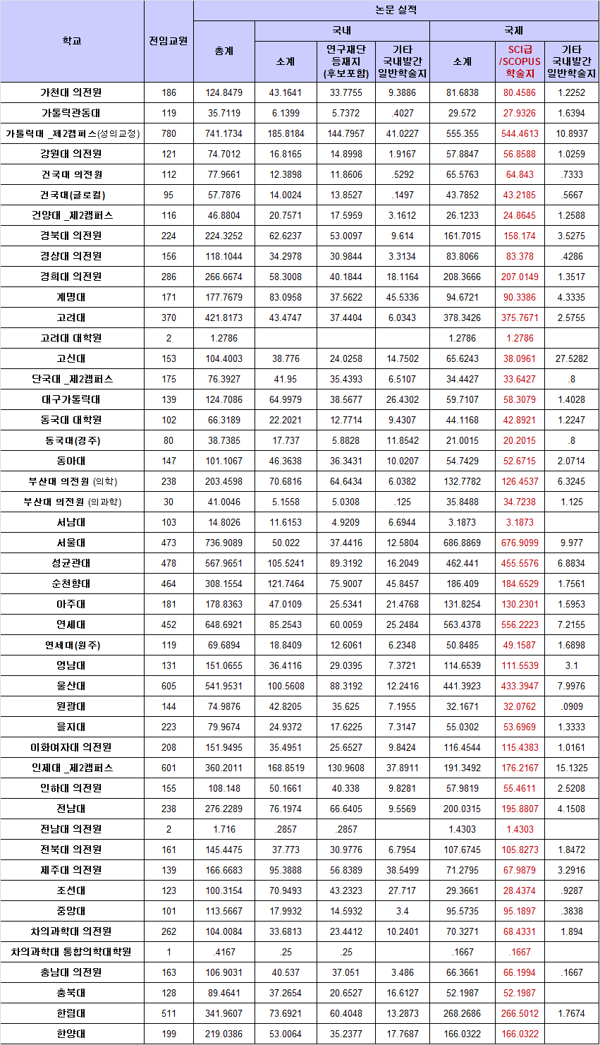 ÀÌ¿¡ µû¸£¸é ¼¿ï´ë Àǰú´ëÇÐÀÌ SCI±Þ¡¤SCOPUS ±¹Á¦ÇмúÁö 676.90ÆíÀ» °ÔÀçÇØ Àü±¹ Àǰú´ëÇÐ ¹× ÀÇÇÐÀü¹®´ëÇпø °¡¿îµ¥ ³í¹® ½ÇÀû 1À§ ÀÚ¸®¸¦ ÁöÄ×´Ù.