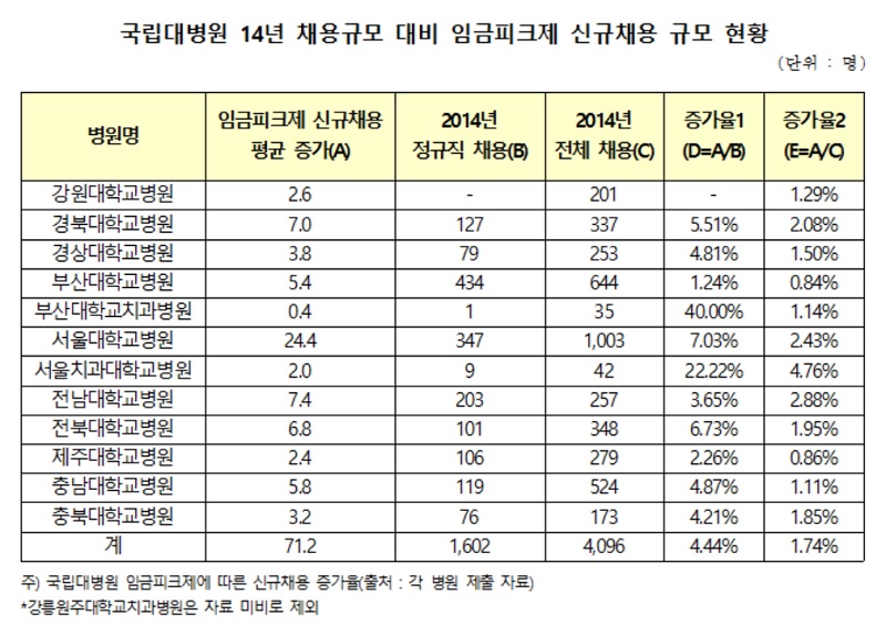 ±¹¸³´ëº´¿øÀº ÀÌÁ÷·üÀÌ ³ô¾Æ ½Å±Ôä¿ë ±Ô¸ð ¶ÇÇÑ Å©´Ù. 12°³ ±¹¸³´ëº´¿øÀÌ Á¦ÃâÇÑ ÀÚ·á¿¡ µû¸£¸é 2014³â ±¹¸³´ëº´¿øÀº Á¤±ÔÁ÷ 1603¸í, ¹«±â°è¾àÁ÷ 217¸í, ºñÁ¤±ÔÁ÷ 2,280¸í µî ÃÑ 4100¸íÀ» ½Å±Ô·Î ä¿ëÇß´Ù.