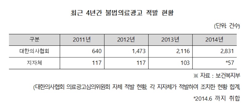 ½ÇÁ¦ Áö³ÇØ º¹ÁöºÎ´Â ºÒ¹ýÀǷᱤ°í¿¡ ´ëÇØ145°Ç(ÇàÁ¤Ã³ºÐ 80°Ç, Çü»ç°í¹ß 65°Ç)ÀÇ Àû¹ß ¹× Á¶Ä¡¿¡ ±×ÃÆ´Ù. ÀÌ´Â ´ëÇÑÀÇ»çÇùȸÀÇ ÀÚüÀû¹ß °Ç¼öÀÇ 10%¿¡µµ ¹ÌÄ¡Áö ¸øÇÑ ¼öÄ¡´Ù.