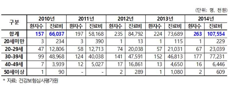 Á¤ºÎÀÇ ¹«°ü½É ¼Ó¿¡ ÃÖ±Ù 5³â°£ »êÈÄ¿ì¿ïÁõÀ¸·Î º´¿ø¿¡ ³»¿ø ¹× ÀÔ¿øÇØ Áø·á ¹ÞÀº ¿©¼ºÀº 2010³â 157¸í¿¡¼ 2014³â 263¸íÀ¸·Î, Áø·áºñ´Â 6000¸¸¿ø¿¡¼ 1¾ï¿øÀ¸·Î Áö¼Ó Áõ°¡ÇؿԴÙ.