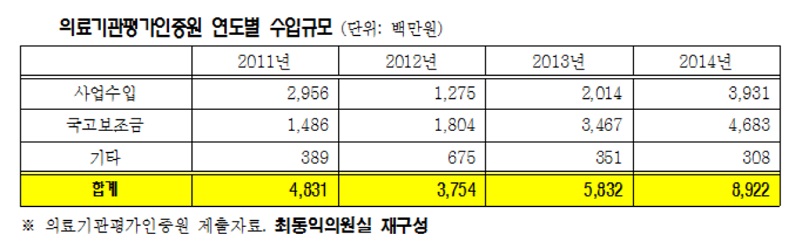 µ¿½Ã¿¡ º¹ÁöºÎ·ÎºÎÅÍ ÀÎÁõÆò°¡»ç¾÷À» À§Å¹¹Þ¾Æ ¼öÇàÇÏ´Â ÀÇ·á±â°üÆò°¡ÀÎÁõ¿øÀÇ ¼öÀÔ±Ô¸ð´Â ¸Å³â Áõ°¡Çß´Ù.