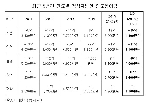 ƯÈ÷ ´Ù¼¸ °÷ÀÇ Àû½ÊÀÚº´¿ø °¡¿îµ¥ ¼¿ï°ú ÀÎõ, Å뿵 µî ´ëµµ½Ã¿¡¼ ¿î¿µµÇ´Â °÷ÀÇ ÇÑ ÇØ ÀûÀÚ´Â ¸¹°Ô´Â 14¾ï¿¡ À̸£´Â µî ÀÌ ¼¼ °÷ÀÇ ÃÖ±Ù 5³â°£ ÀûÀÚ ÇÕ°è°¡ 100¾ï¿øÀÌ ³Ñ´Â °ÍÀ¸·Î Á¶»çµÆ´Ù.