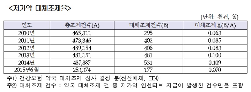 »õÁ¤Ä¡¹ÎÁÖ¿¬ÇÕ ³²Àμø ÀÇ¿øÀº 22ÀÏ ±¹È¸ º¸°Çº¹ÁöÀ§¿øÈ¸ÀÇ °Ç°º¸Çè½É»çÆò°¡¿ø ±¹Á¤°¨»ç¿¡¼ ¡°Áö³ÇØ Àú°¡¾à ´ëüÁ¶Á¦ ÇöȲÀ» º¸¸é ÃÑ Á¶Á¦°Ç¼ö 4¾ï8788¸¸°Ç Áß ´ëüÁ¶Á¦ °Ç¼ö´Â 531°ÇÀ¸·Î ºñÀ²ÀÌ 0.109%¿¡ ºÒ°úÇß´Ù¡±°í ÁöÀûÇß´Ù.
