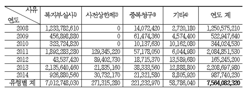 ±× µÚ·Î »çÀü»óÇÑÁ¦ ȯ¼ö°¡ 2¾ï 7132¸¸¿ø, Áߺ¹Ã»±¸·Î ȯ¼ö´çÇÑ ¾×¼ö°¡ 2¾ï2123¸¸¿ø, ±âŸ ȯ¼ö°¡ 5879¸¸¿øÀ̾ú´Ù.