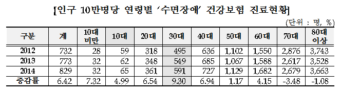 ±¹¹Î°Ç°º¸Çè°ø´Ü(ÀÌ»çÀå ¼º»óö)ÀÌ Áö³ 2012³âºÎÅÍ 2014³â±îÁö °Ç°º¸Çè Áø·áºñ Áö±ÞÀڷḦ ºÐ¼®ÇÑ °á°ú, '¼ö¸éÀå¾Ö(G47)'·Î º´¿øÀ» ã´Â À̵éÀÌ ¸Å³â 7.6%¾¿ Áõ°¡Çϰí ÀÖ´Â °ÍÀ¸·Î ³ªÅ¸³µ´Ù.