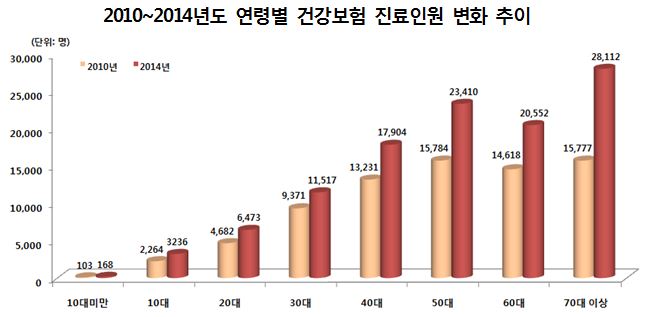 ÀÌ °°Àº Çö»óÀº Áø·áÀοø Áõ°¡°¡ Å« ¸òÀ» Çß´Ù. °ø´Ü ºÐ¼®°á°ú¸¦ »ìÆìº¸¸é 2014³â ¸Þ´Ï¿¡¸£º´À¸·Î Áø·á¸¦ ¹ÞÀº ÀοøÀº 11¸¸1372¸íÀ¸·Î 5³â ÀüÀÎ 2010³â 7¸¸5830¸í ´ëºñ 46.9%°¡·® Áõ°¡Çß´Ù.
