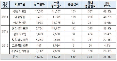 ±× °á°ú »êºÎÀΰú Áø·á 4¸¸6060°Ç, ¼Ò¾ÆÃ»¼Ò³â°ú Áø·á 6¸¸8005°Ç, ºÐ¸¸½ÇÀû 580°Ç, °ü³»ºÐ¸¸°Ç¼ö 2011°ÇÀ» ³ªÅ¸³Â´Ù.