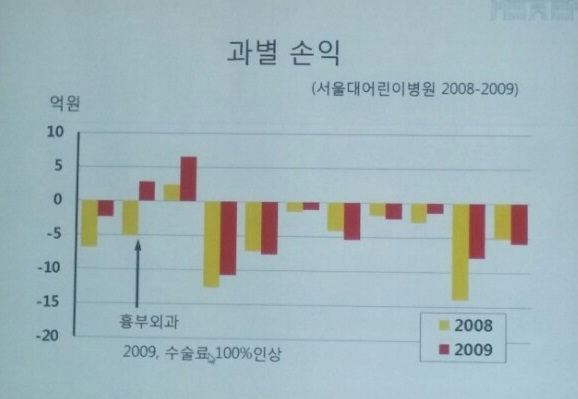 ½ÇÁ¦, 2008³â ½Å°æ¿Ü°ú¸¦ Á¦¿ÜÇÑ ¸ðµç Áø·á°ú°¡ ÀûÀÚ¿´´ø ¼¿ï´ë¾î¸°À̺´¿øÀÌ 2009³â ÈäºÎ¿Ü°ú°¡ ÈæÀÚ·Î µ¹¾Æ¼¹´Ù. Á¤ºÎ°¡ 2009³â ÈäºÎ¿Ü°ú ¼ö°¡¸¦ 100% ÀλóÇÑ ´öºÐÀÌ´Ù.