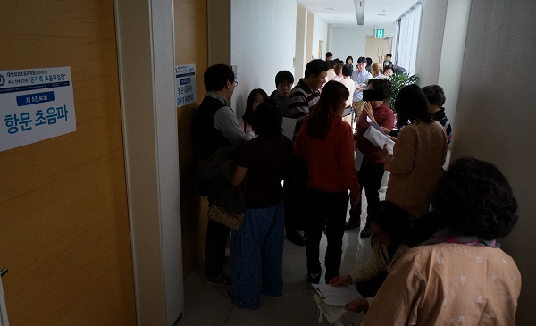 º´¿øÀÌ ¹®À» ´ÝÀº ÀÏ¿äÀÏ ¿ÀÀü, °ËÁø °¡¿îÀ» ÀÔÀº ȯÀÚµéÀÌ Áø·á½Ç ¾Õ¿¡ »ï»ï¿À¿À ¸ð¿© ´ã¼Ò¸¦ ³ª´©°í ÀÖ´Ù. ´ëÇѿܰúÃÊÀ½ÆÄÇÐȸ°¡ ºÎ»ê ¿¬Á¦±¸ »õÇ׿¿ø¿¡¼ ÁøÇàÇÏ´Â ÃÊÀ½ÆÄ ¹«·áÁø·á¸¦ ¹Þ±â À§Çؼ´Ù.