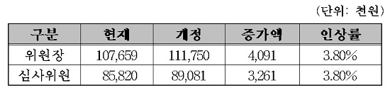 ÇöÀç À§¿øÀåÀº 1¾ï765¸¸9000¿ø, ½É»çÀ§¿øÀº 8582¸¸¿øÀÇ ¿¬ºÀÀÌ Ã¥Á¤µÈ »óÅ´Ù. 2016³âºÎÅÍ´Â ÀÓ±ÝÀÌ 3.8% ÀλóµÈ´Ù. °¢°¢ 409¸¸1000¿ø, 326¸¸1000¿ø¾¿ ¿¬ºÀÀÌ ¿À¸¥´Ù.