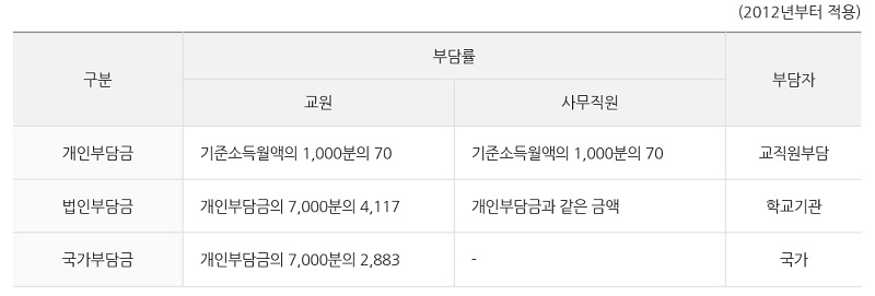 ÇÑÆí, »çÇבּÝÁ¦µµ´Â °øÀû¿¬±ÝÁ¦µµ·Î¼ ¹ý·ü¿¡ ÀÇÇØ °¡ÀÔÀÌ Àǹ«È µÅ ÀÖÀ¸¸ç, °¡ÀԱⰣ°ú ºÎ´ã±Ý ³³ºÎ ¹× °¢Á¾ ±Þ¿©ÀÇ Áö±Þ ¿ä°Ç µîÀÌ ÀÏ·üÀûÀÌ´Ù. ºÎ´ã·ü°ú ±Þ¿© ³»¿ë µî Á¦µµÀÇ ±Ù°£ÀÌ °ø¹«¿ø¿¬±ÝÁ¦µµ¿Í µ¿ÀÏÇÏ´Ù.