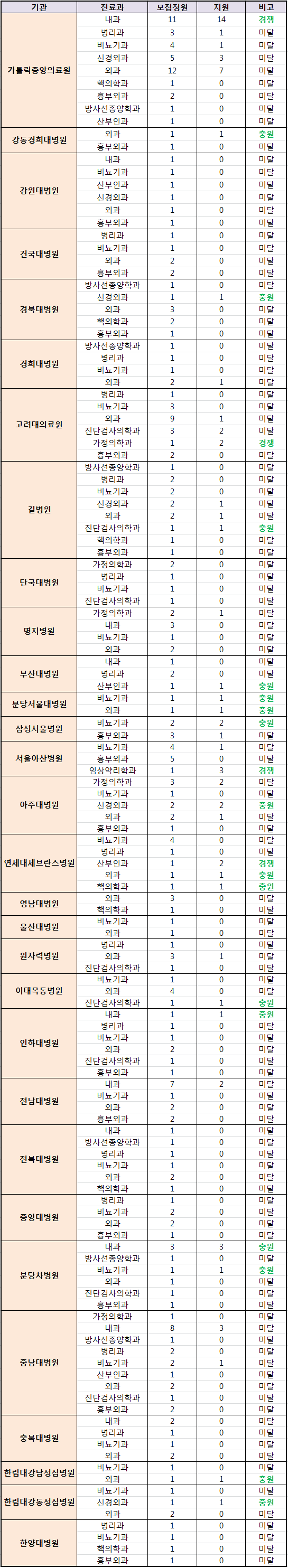 Àü³²´ëº´¿øÀº ³»°ú¿¡ 2¸íÀÌ Áö¿øÇϴµ¥ ±×ÃÆ°í, ÀüºÏ´ëº´¿øÀº Áö¿øÀÚ°¡ ÇÑ¸íµµ ¾ø¾ú´Ù.