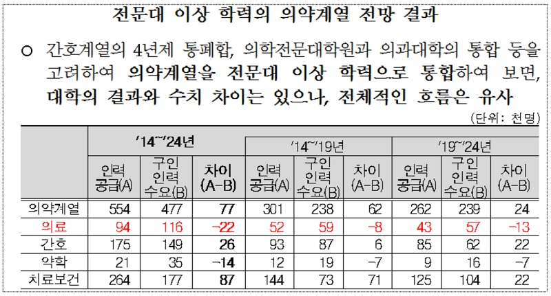 º¸´Ù ±¸Ã¼ÀûÀ¸·Î ÀÇ·á(Àǻ硤ġ°úÀǻ硤ÇÑÀÇ»ç) ÀηÂÀº 2014~2024³â °£ 9¸¸4000¸íÀÌ °ø±ÞµÇ´Âµ¥ ¼ö¿ä´Â 11¸¸6000¸íÀ¸·Î 2¸¸2000¸íÀÌ ºÎÁ·ÇÏ´Ù.