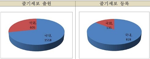 ºÐ¼® ³»¿ëÀ» »ìÆìº¸¸é 2123°ÇÀÇ Áٱ⼼Æ÷ ƯÇã Ãâ¿ø¿¡¼ ±¹³» Ãâ¿øÀº 1518°ÇÀ̾úÀ¸¸ç ±¹¿Ü°¡ 605°ÇÀ» Â÷ÁöÇß´Ù. ƯÈ÷ ÀÌ °¡¿îµ¥ ƯÇã µî·ÏÀ¸·Î À̾îÁø ¼ö´Â ±¹³»°¡ 1518°Ç Áß 828°Ç, ±¹¿Ü°¡ 605°Ç Áß 135°Ç¿¡ ºÒ°úÇß´Ù.