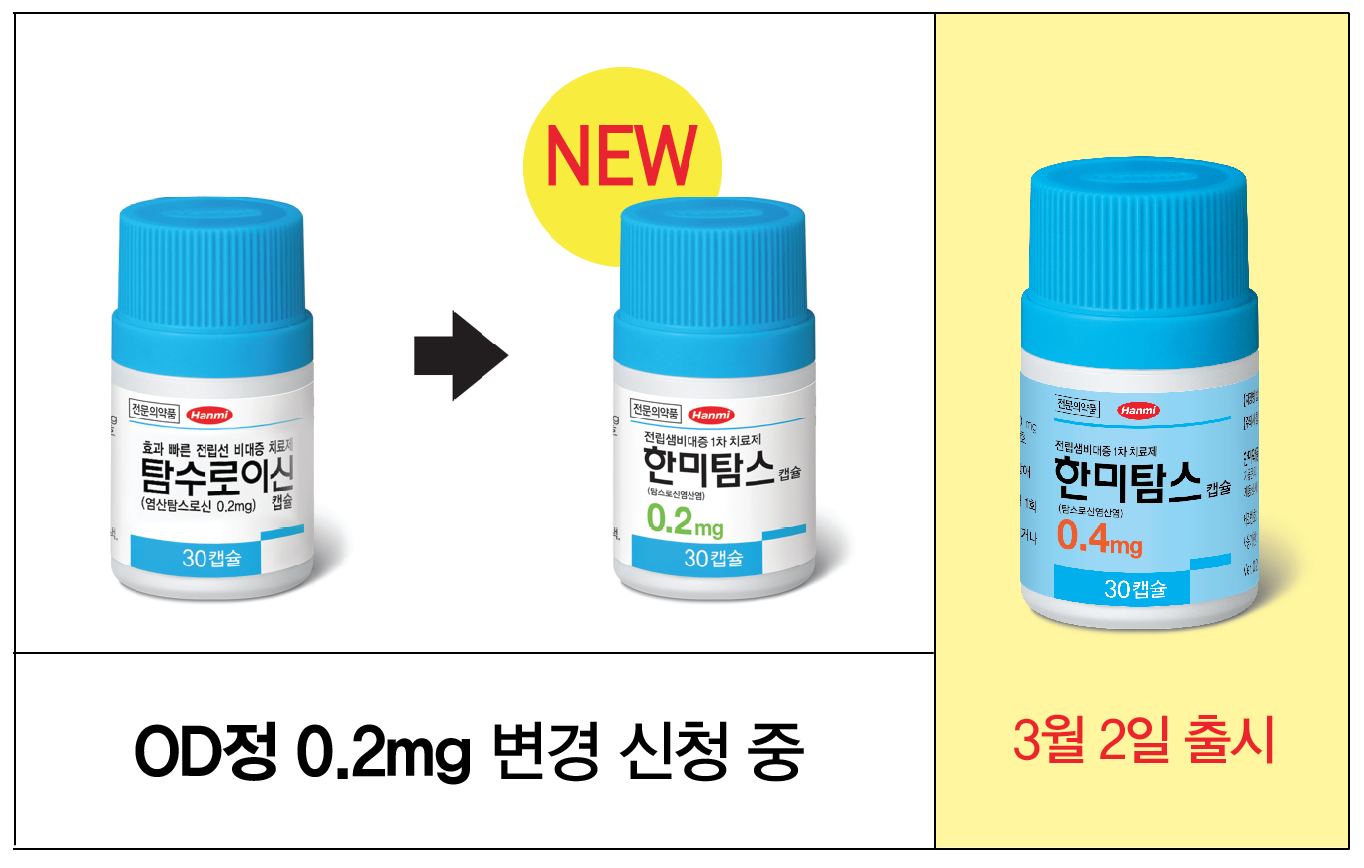 Á¦Ç°¸íÀÌ º¯°æµÈ ÇѹÌŽ½ºÄ¸½¶ 0.2mg µîÀº ±âÁ¸ Àç°í°¡ ¼ÒÁøµÇ´Â ´ë·Î ÃâÇ쵃 ¿¹Á¤À̸ç, ¼º»ó, ¾à°¡ ¹× ÀûÀÀÁõ, º¸ÇèÄÚµå µîÀº ±âÁ¸°ú µ¿ÀÏÇÏ´Ù.