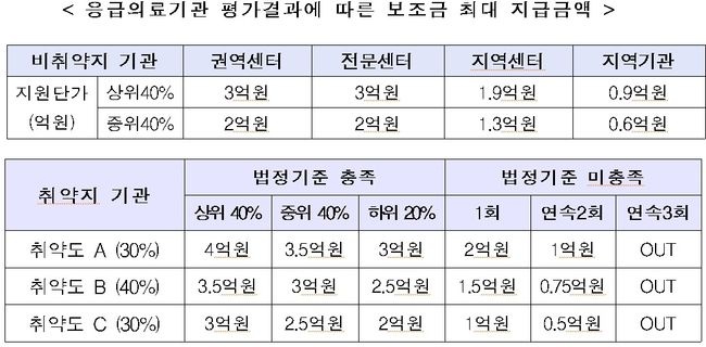 º¹ÁöºÎ´Â Æò°¡°á°ú¸¦ Åä´ë·Î ÀÀ±ÞÀÇ·á±â°üµé¿¡ Áö±ÞÇÏ´Â ¿î¿µºñ º¸Á¶±ÝÀ» Â÷µîÁö¿øÇÏ´Â ÇÑÆí 3³â ¿¬¼ÓÀ¸·Î ¹ýÁ¤±âÁØÀ» ÃæÁ·ÇÏÁö ¸øÇÑ ±â°üÀº ÁöÁ¤Ãë¼Ò ÇÒ °èȹÀÌ´Ù.