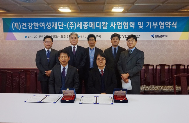 ¿©¼º°¡Á·ºÎ »êÇÏ °Ç°ÇÑ¿©¼ºÀç´Ü(ÀÌ»çÀå ¹è´ö¼ö)°ú º¹°°æ¼ö¼ú¿ë ÀÇ·á±â±¸ Àü¹®±â¾÷ ¼¼Á¾¸ÞµðÄ®(´ëÇ¥ÀÌ»ç Á¶¼ºÈ¯)Àº ÃÖ±Ù ºÎÀξÏ(ÀڱðæºÎ¾Ï, ³¼Ò¾Ï, Àڱ󻸷¾Ï)ÀÇ Ä¡·á ¹× È«º¸ »ç¾÷ Çù·ÂÀ» ÅëÇÑ ¿©¼ºÀÇ »îÀÇ Áú Çâ»óÀ» À§ÇØ »ç¾÷ Çù·Â ¹× ±âºÎ Çù¾àÀ» ü°áÇß´Ù.