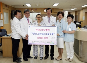 Àü³²´ëº´¿øÀº °æÁ¦ÀûÀ¸·Î ¾î·Á¿î »óȲ¿¡¼µµ ȸñÇÑ ´ÙÀÚ³à °¡Á¤À» ÀÌ·ç°í ÀÖ´Â »ê¸ð¸¦ À§·Î, °Ý·ÁÇϱâ À§ÇØ 28ÀÏ º´¿ø 2µ¿ ºÐ¸¸½Ç¿¡¼ ÃàÇÏÇà»ç¸¦ °¡Á³´Ù. Áø·áºñµµ Àü¾× Áö¿øÇß´Ù.[»çÁø]