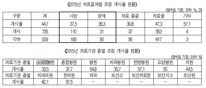 ÀÇ·á±â°ü Á¾º° Á¶Á¤ °³½ÃÀ²Àº ÀÇ¿ø±ÞÀÌ 44.%·Î °¡Àå ³ô¾Ò°í À̾î Á¾ÇÕº´¿ø 37.7%, »ó±ÞÁ¾ÇÕº´¿ø 33.5% ¼øÀ̾ú´Ù.