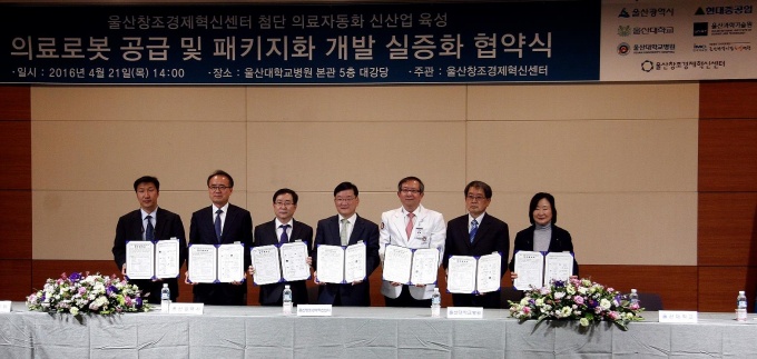 ¿ï»ê´ëº´¿øÀº 21ÀÏ ¿ï»ê±¤¿ª½Ã, ¿ï»êâÁ¶°æÁ¦Çõ½Å¼¾ÅÍ¿Í ‘ÀÇ·á·Îº¿ °ø±Þ ¹× ÆÐŰÁöÈ °³¹ß ½ÇÁõ’À» À§ÇÑ Çù¾àÀ» ü°áÇϰí ÷´ÜÀÇ·á ÀÚµ¿È»ê¾÷ À°¼º¿¡ Àû±Ø Çù·ÂÇϱâ·Î Çß´Ù.