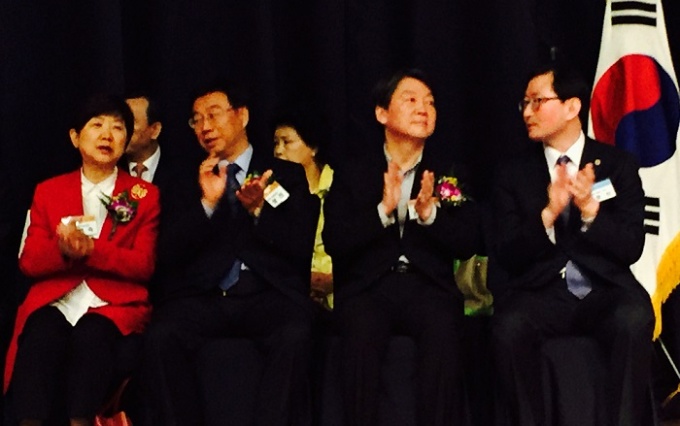 ¡ãÁ¦20´ë ±¹È¸ ÀÔ¼º¿¡ ¼º°øÇÑ »õ´©¸®´ç ¹ÚÀμ÷ ÀÇ¿ø°ú ½Å»óÁø ÀÇ¿ø, ±¹¹ÎÀÇ´ç ¾Èö¼ö ´ëÇ¥°¡ ³ª¶õÈ÷ ¾É¾Æ Á¤±âÃÑȸ °³È¸¸¦ ÃàÇÏÇϰí ÀÖ´Ù.