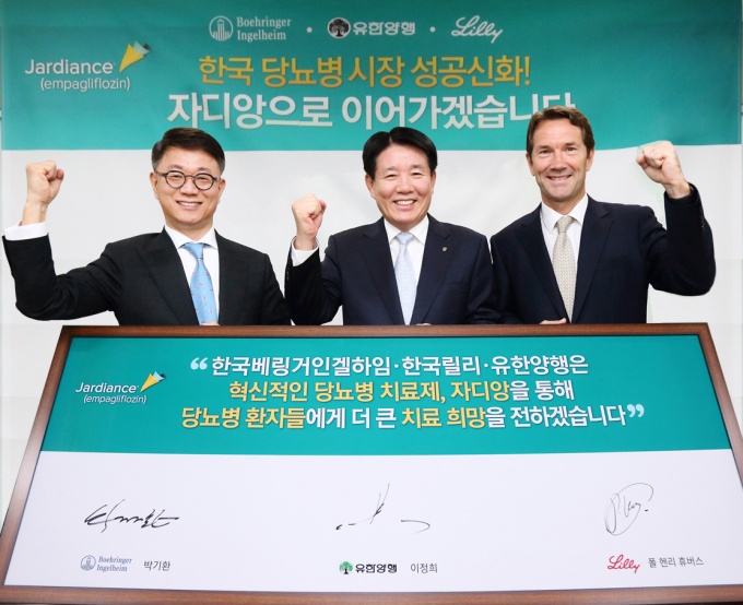 Çѱ¹º£¸µ°ÅÀΰÖÇÏÀÓ°ú Çѱ¹¸±¸®, ±×¸®°í À¯ÇѾçÇàÀº Áö³ 25ÀÏ SGLT-2 ¾ïÁ¦Á¦ 'ÀÚµð¾Ó'ÀÇ Ãâ½Ã¸¦ ¾ÕµÎ°í ¸¶ÄÉÆÃ ¹× ¿µ¾÷ Ȱµ¿ÀÇ Çù·ÂÀ» ´ÙÁüÇÏ´Â ±â³ä½ÄÀ» °¡Á³´Ù.