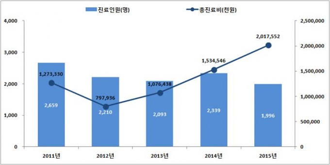 Áø·áÀοøÀº ´Ù¼Ò °¨¼ÒÇÏ´Â °æÇâÀ» º¸¿´´Ù. 2011³âÀ¸·Î 2659¸íÀÇ È¯ÀÚ°¡ ¹ß»ýÇßÁö¸¸ Áö³ÇØ¿¡´Â 1996¸íÀ» ±â·ÏÇß´Ù.