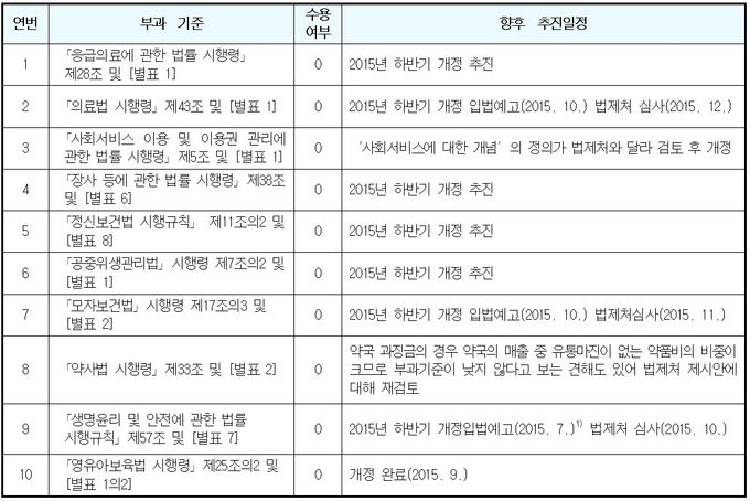 ¹ýÁ¦Ã³´Â Áö³ÇØ 1¿ù ÀÀ±ÞÀÇ·á¿¡ °üÇÑ ¹ý·ü µî º¸°Çº¹ÁöºÎ ¼Ò°ü 10°³ ¹ý·ÉÀÇ °ú¡±Ý ºÎ°úü°è°¡ ºÒÇÕ¸®ÇÑ ºÎºÐÀÌ ÀÖ¾î °³¼±ÀÌ ÇÊ¿äÇÏ´Ù°í ±Ç°íÇß´Ù.