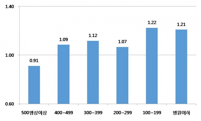 °á±¹ ÇØ´ç ³»¿ëÀº »ç¸Á·ü¿¡µµ Á÷Á¢ÀûÀÎ ¿µÇâÀ» ¹ÌÃÆ´Ù. 500º´»ó ÀÌ»ó ÀÇ·á±â°ü°ú 200º´»ó ¹Ì¸¸ ÀÇ·á±â°ü °£ ÁßÁõµµ º¸Á¤ »ç¸Á·ü Â÷ÀÌ´Â 1.34¹è·Î Áý°èµÆ´Ù.