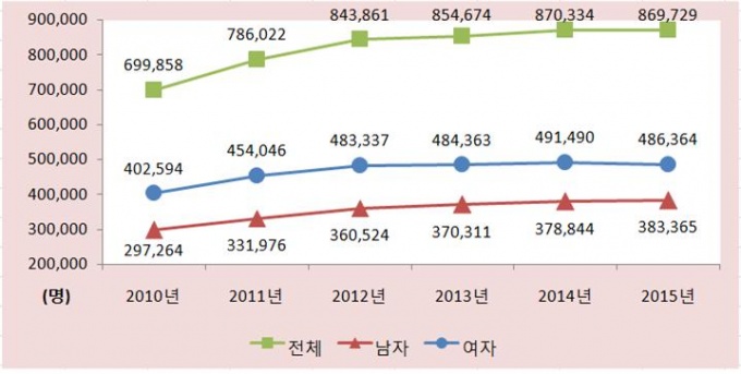 19ÀÏ ±¹¹Î°Ç°º¸Çè°ø´Ü(ÀÌ»çÀå ¼º»óö)ÀÌ 2010~2015³â °Ç°º¸Çè Áø·áºñ Áö±ÞÀڷḦ ºÐ¼®ÇÑ °á°ú ‘°æÃß°£ÆÇÀå¾Ö’ Áø·áÀοø¼ö´Â 2010³â 69¸¸9858¸í¿¡¼ 2015³â 86¸¸9729¸íÀ¸·Î 24.3% Áõ°¡Çß´Ù.