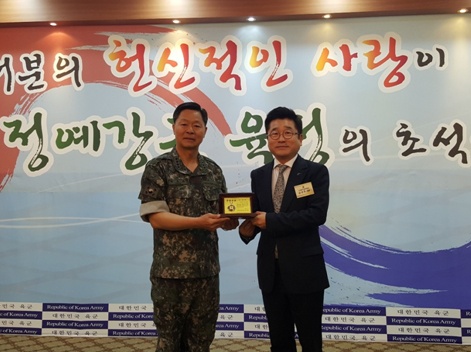 ½ºÅ¸Å°±×·ì(½É»óµ· ´ëÇ¥)ÀÌ ÃÖ±Ù À°±º À庴µéÀÇ º¹Áö Çâ»óÀ» À§ÇØ °øÇåȰµ¿À» ÆîÄ£ °ø·Î·Î À°±ºÂü¸ðÃÑÀå ÀåÁØ±Ô ´ëÀå¿¡°Ô °¨»çÆÐ¸¦ ¼ö¿© ¹Þ¾Ò´Ù.