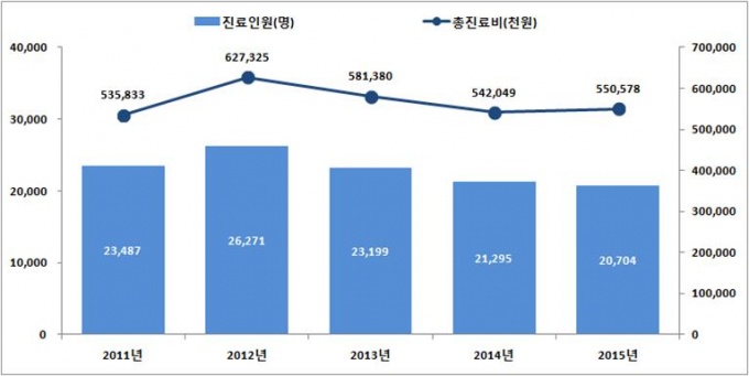 2015³â ±âÁØ Áø·áÀοøÀÌ °¡Àå ¸¹Àº ¿¬·É±¸°£Àº 40´ë·Î Àüü Áø·áÀοøÀÇ 20.4%¸¦ Â÷Áö´Ù. À̾î 50´ë 19.1%, 30´ë 17.2%, 60´ë 11.6%, 20´ë 11.4% ¼øÀ̾ú´Ù.