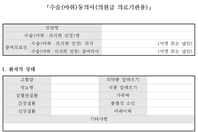 µ¿ÀǼ ÀÛ¼º ÈÄ¿¡´Â ¼ö¼ú°ú °ü·ÃÇÑ ¸ðµç »çÇ×À» ÀÇ»çÀÇ ÆÇ´Ü¿¡ À§ÀÓÇÑ´Ù°í ¸í½ÃµÅ ÀÖ´Ù.